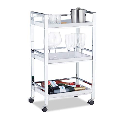 Relaxdays Chariot amovible 3 plateaux, roulettes, blanc méta...
