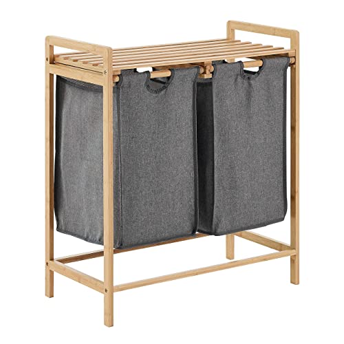 Panier à linge avec sacs amovibles, tissu/bambou gris