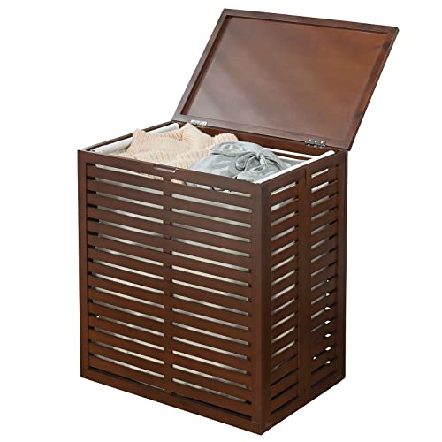 Panier à linge robuste en bambou, bac pliable et sac amovibl...