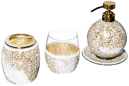 Ensemble accessoires mosaïque salle bain 4 pièces doré