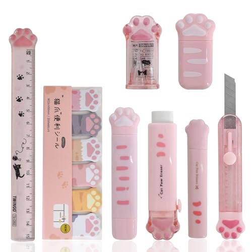 Ensemble papeterie 9 pièces, taille crayon rose patte chat,...