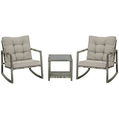 Jardin Salon 2 Personnes Chaises Bascule Coussins Table Bass...