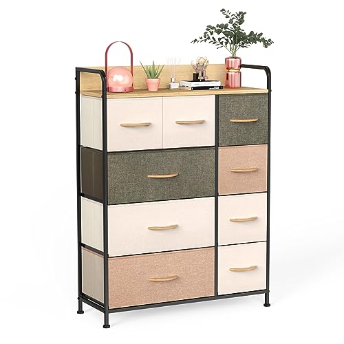 Commode tissu 9 tiroirs Verticale avec boutons bois