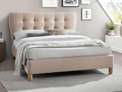 Vente-Unique Beige 140x190cm Lit Tissu Capitonné
