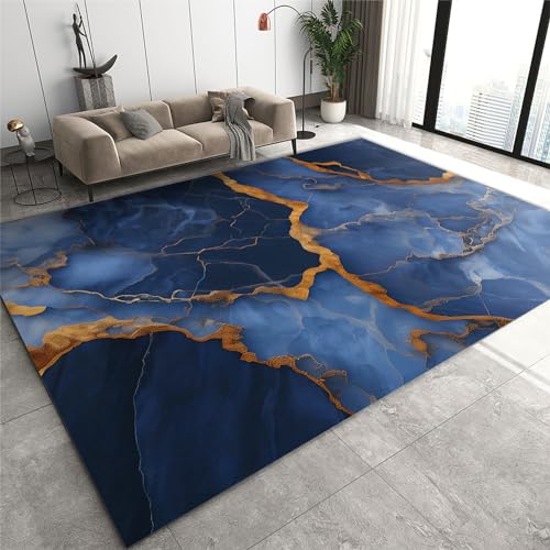 WTVBHF Tapis Dégradé Bleu Antidérapant Marbre Contemporain L...