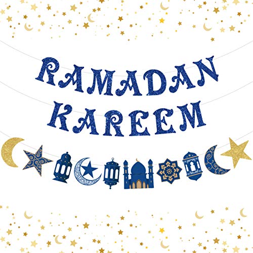 Ramadan Bannière Étoile Lune Guirlande Bleu