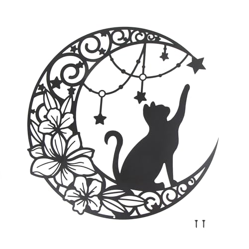Mural Noir Art Mural 11.8\" Décoration Ronde Chat Lune