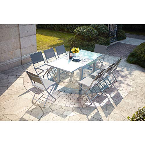 Outsunny Salon de Jardin Extensible Aluminium et Textilène,...