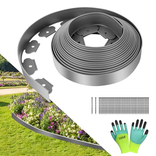 Bordure de pelouse plastique PE flexible grise, 10m x 5cm, 6...