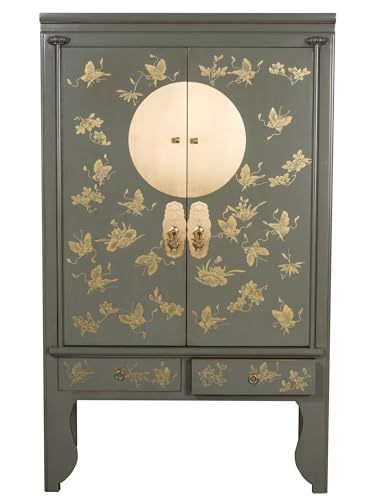 Armoire chinoise fine asiatique grise olive peinte à la main...