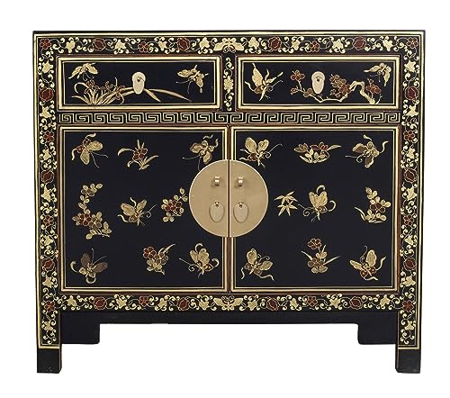 Fine Armoire Chinoise Papillons Peinte à la Main Orientique