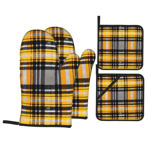 YYHWHJDE Lot de 4 maniques et maniques à carreaux jaunes gri...