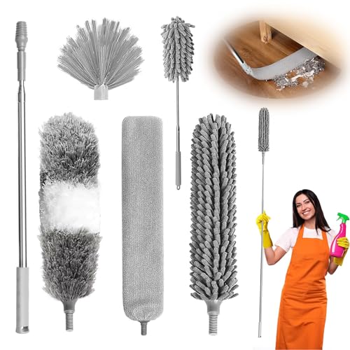 6 Pièces Plumeau Telescopique, Plumeau Lavable Microfibre, P...