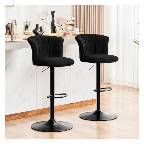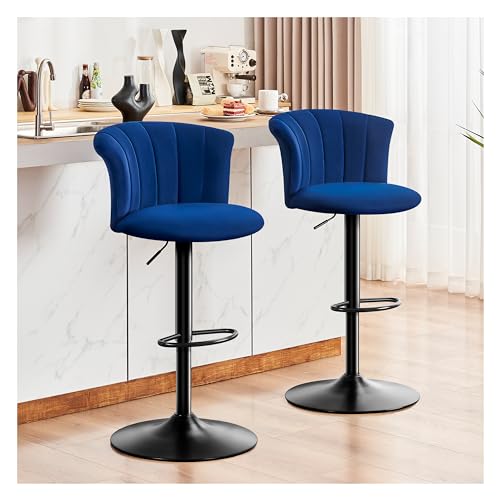 Tabouret de Bar Lot de 2 Chaise Tissu Velours Soie Réglable
