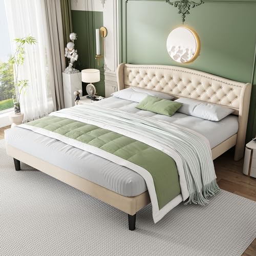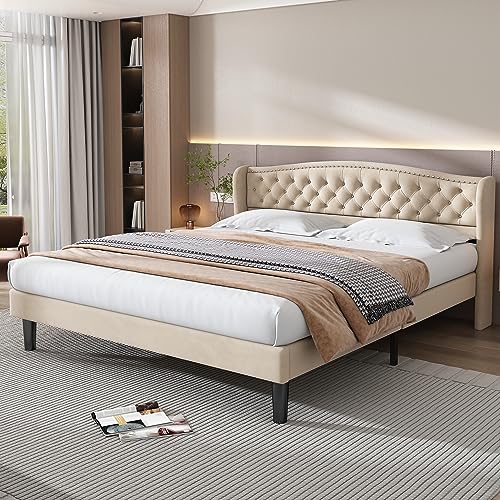 NQSLDM Lit Capitonné 140x190cm Tissu Velours