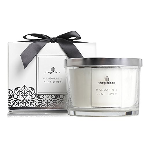 Grande bougie Mandarine-Tournesol parfumée, cadeau féminin.
