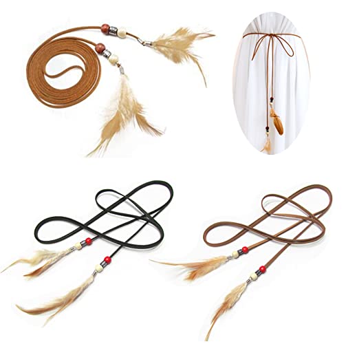 Lot de 2 ceintures fines pour femmes avec pompons et plume,...