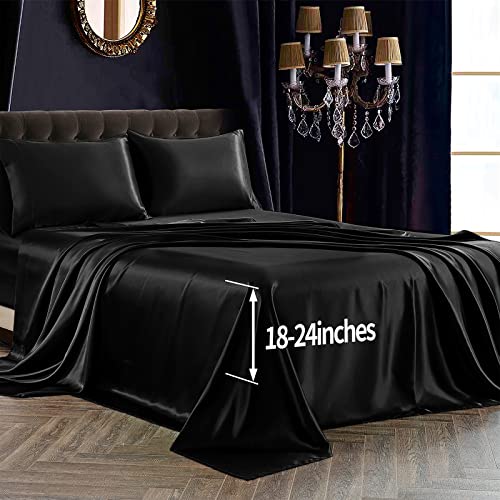 Si visdra BZX Parure de lit 3 pièces satin noir ultra soyeux