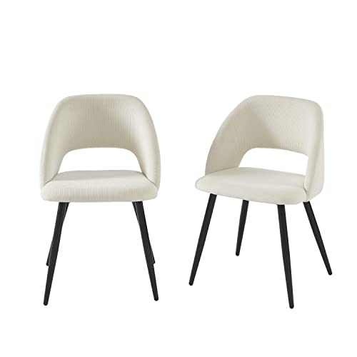 BAÏTA Lot de 2 chaises Vintage Velours côtelé Beige Pieds mé...