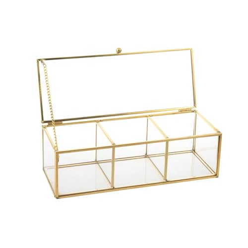 Feyarl Boîte à sachets de thé en verre doré avec couvercle -...