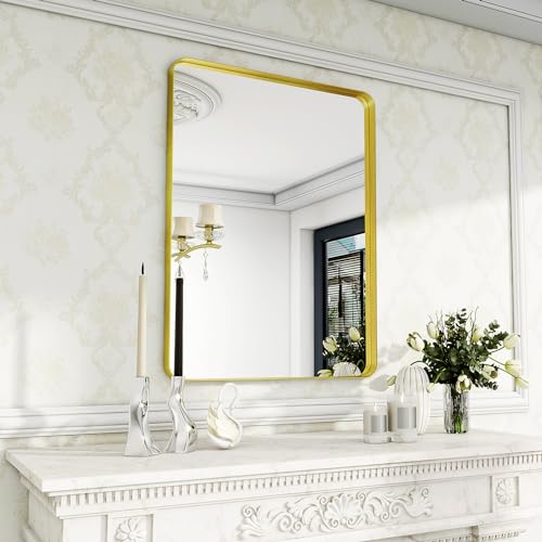 Miroir mural doré angle fileté 75 x 55 cm