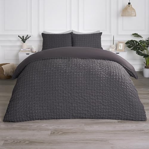 Lit géométrique luxe avec housse et taies en relief doux gri...