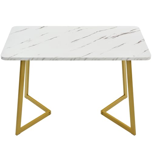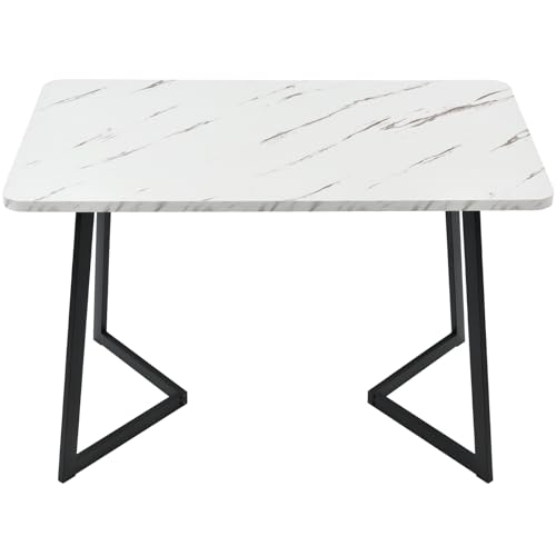 JOROBURO Table de salle à manger en marbre, cadre métal, rec...
