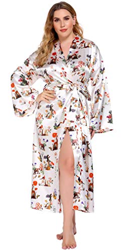 FEOYA Kimono Femme Robe de Chambre Longue en Soie Artificiel...