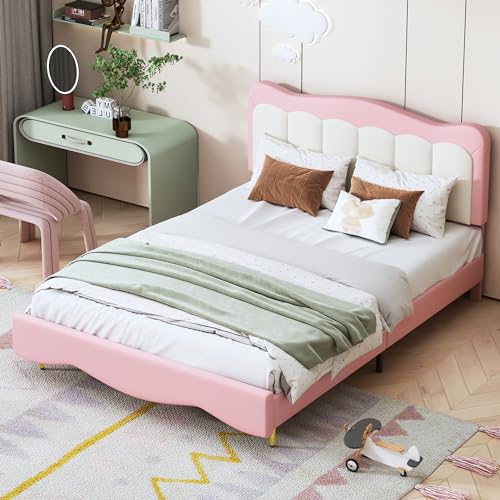 Merax Lit rembourré synthétique 140x200 cm, sommier à lattes...