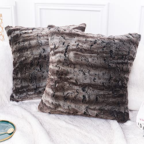Inchgrass Lot de 2 housses de coussin en fausse fourrure san...