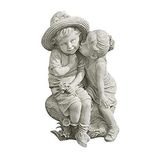 Fille Statue Embrasser Jardin Enfants Ornement Pierre Effet