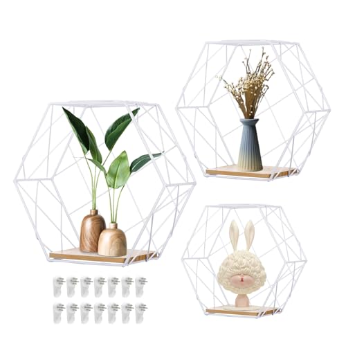 Ensemble de 3 étagères murales hexagonales, étagères suspend...