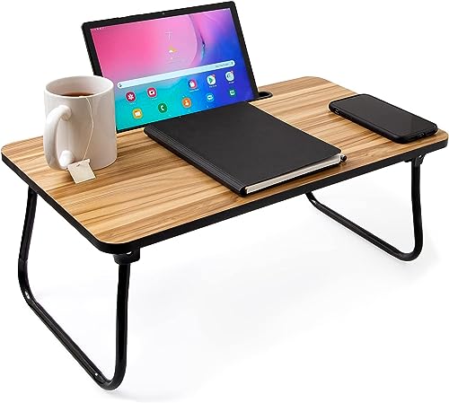 Table de Lit Bureau Portable Pieds Pliables Plateau Bois Idé...