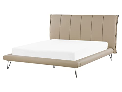 Lit Double Beige PU Cuir 160 x 200 cm Sommier Haute Tête Min...