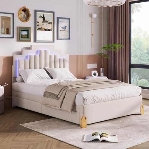 Lit Double King Size LED Rembourré Pied Hauts Métal D'adoles...