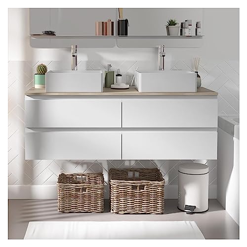 LuxeBain Meuble Salle de Bain Double Vasque Bois Blanc 120cm