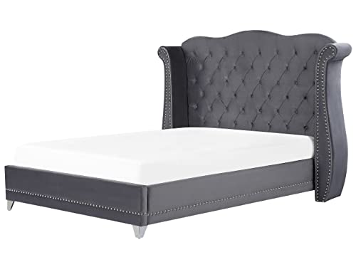 Cadre lit double rembourré futon gris 160 x 200 cm