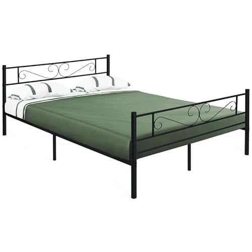 IDMarket Double Tampa Metal Sommier 140x190 cm Noir