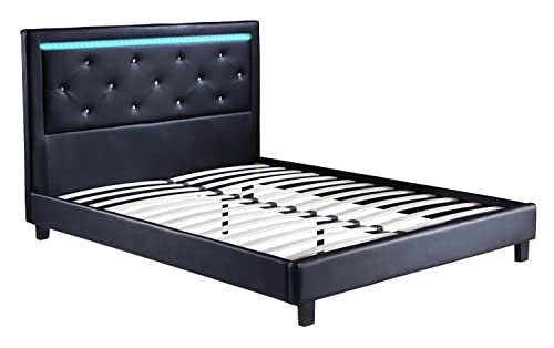 DORAFAI Cadre Métal Lit Double, 140x190cm Noir