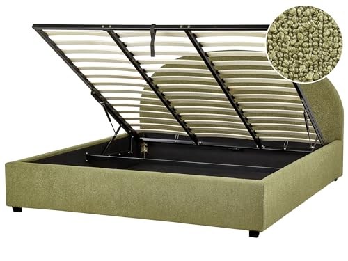 Minimaliste Double 180 x 200 cm Rangement Bouclé Vert Olive...
