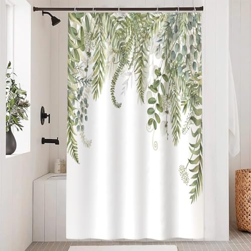Rideau Douche Eucalyptus Feuilles Vert Sauge Lavables Anti M...