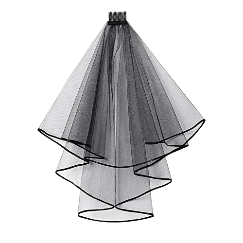 Voiles Mariée Halloween Noir Double Voile Satin Lié Gothique...