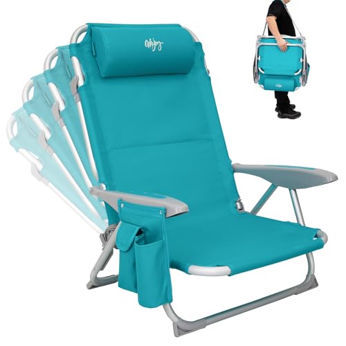 Chaise de plage réglable, basse pliante, dossier haut, poche...