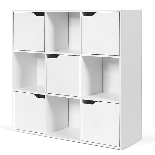 Bibliothèque Étagère 9 Cases, Armoire Rangement 4 Cubes Ouve...