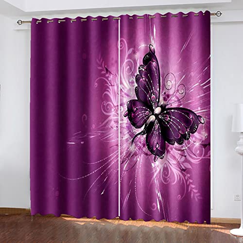 MUDUH Rideaux Occultants 3D Beau Papillon Violet Imprimé, Ri...