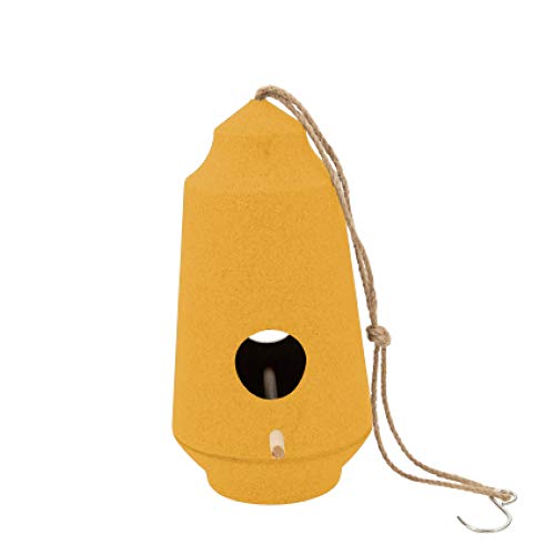 Nichoir suspendu oiseaux bambou jaune ocre 15cm 28cm