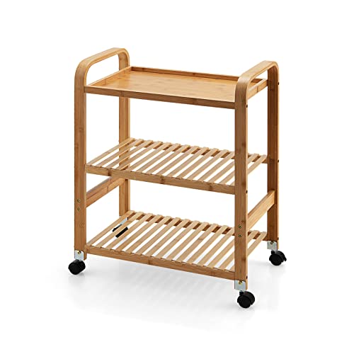 Chariot roulant en bambou 3 niveaux, roulettes verrouillable...