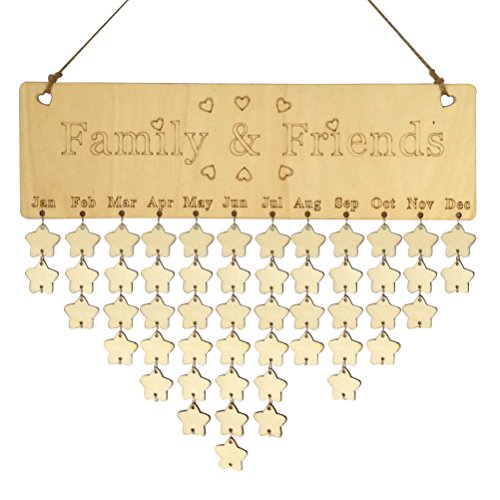Healifty Calendrier d''anniversaire familial en bois à suspe...