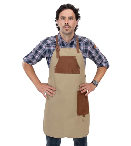 Tablier de cuisine en toile et cuir : le tablier de cuisine...