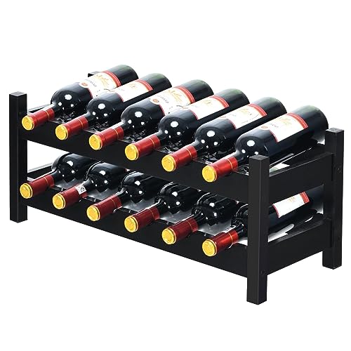 GOPLUS Casier Vin 12 Bouteilles Bambou Étagère 2 Niveaux Por...